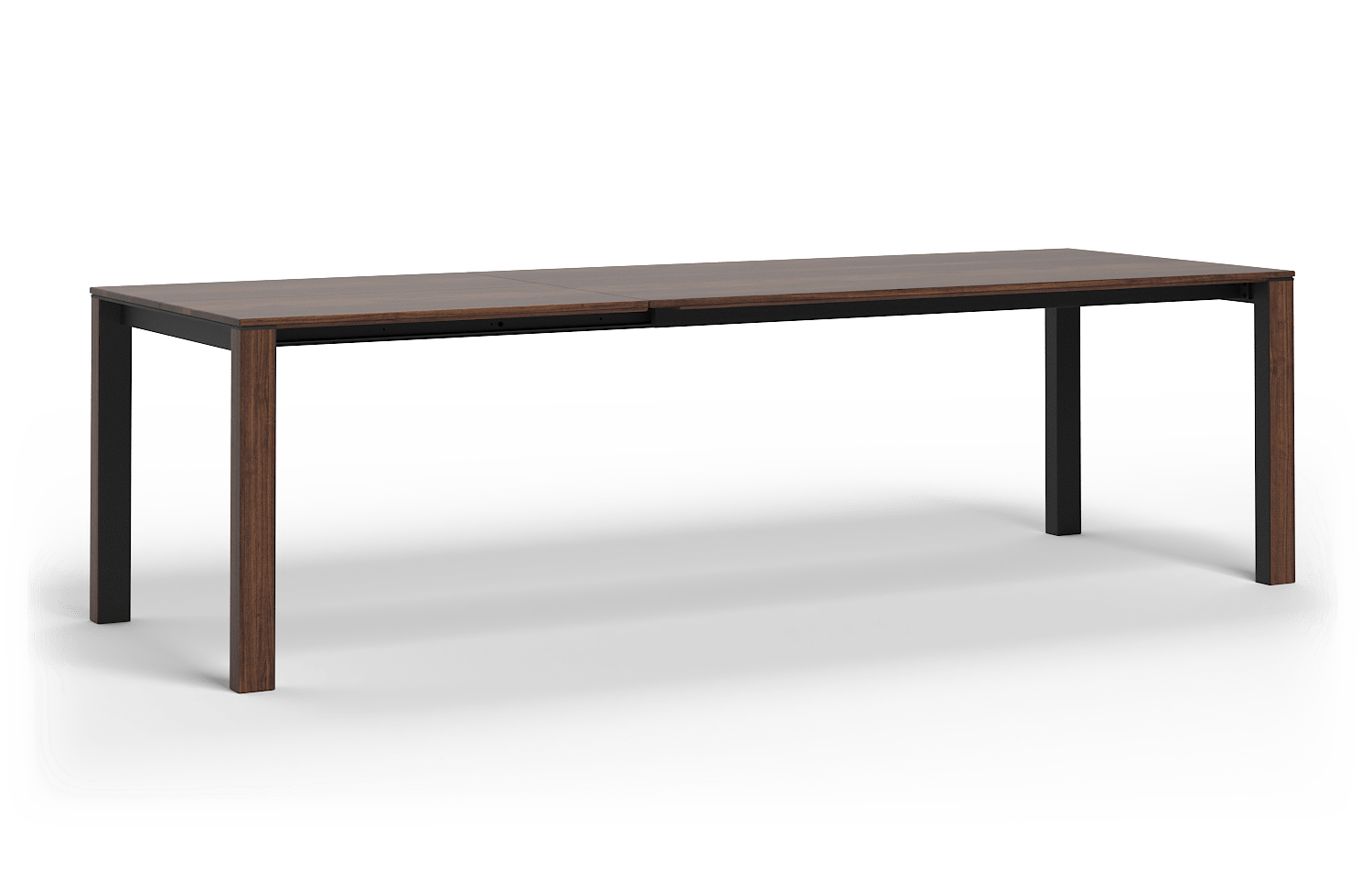 Herzstück dieses Tisches ist das innovative Aluauszugssystem mit Flachmechanik. Es fügt sich mit nur 50 mm Zargenhöhe sehr dezent unter die Tischplatte ein und sorgt für eine herausragende Beinfreiheit – ein echtes Komfort-Plus, das auch Armlehnenstühlen optimalen Raum bietet. Die lichte Höhe unter der 25 mm starken Massivholzplatte beträgt lediglich etwa 80 mm unter Tischhöhe – damit ist großzügiger Sitzkomfort garantiert.