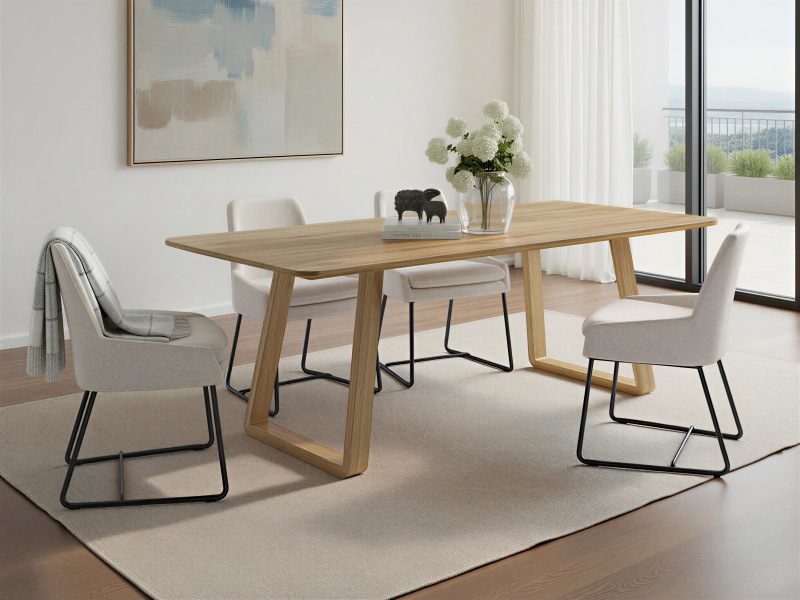 Erster Tee, gemeinsames Frühstück, Zeitung am Morgen – der Esstisch ET138 schafft Raum für Rituale. Seine Harmonie ist das Resultat ausgewogener Formen. Die Materialstärke der Tischplatte ist durch eine 45° Fase optisch verjüngt. Angewinkelte Kufen geben der schwerelos erscheinenden Fläche Halt. Seine robuste Konstruktion ist auf Langlebigkeit ausgelegt. Gefertigt aus heimischen Laubhölzern, geschliffen und geölt, kann der Tisch auch nach jahrzehntelangem Gebrauch mühelos aufbereitet werden. Er wird auf Bestellung maßgefertigt – Länge, Breite, Höhe, Holzart und Oberflächenbehandlung sind frei konfigurierbar.