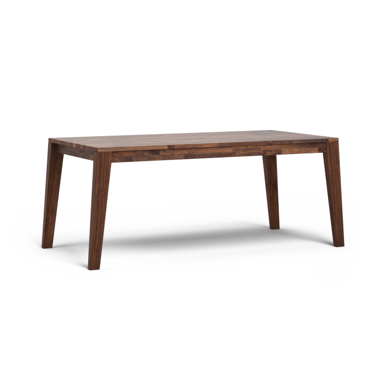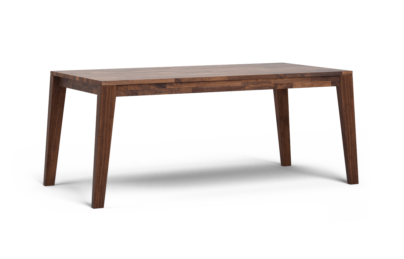 Der Esstisch ET110 ist ein optisch anspruchsvoller, moderner Zargentisch. Das herausstechende Merkmal bilden die schrägen, um etwa 4° angewinkelten Beine, die bündig mit der Tischplatte abschließen. Des Weiteren wirken die Beine sowohl in Längsrichtung als auch nach innen verjüngt.