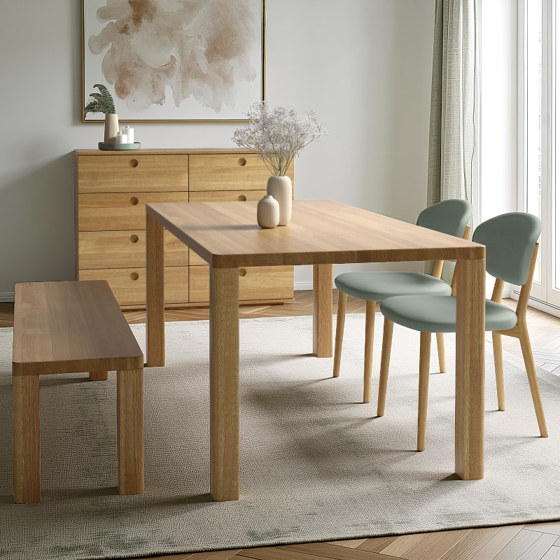 Pro Person werden ca. 60 cm in der Länge benötigt, um bequem sitzen und essen zu können. Wünschen Sie ein großzügigeres Platzangebot, so sollten bis zu 70 cm pro Person einkalkuliert werden. Bitte beachten Sie, dass die Breite der Tischbeine von der Gesamtlänge des Tisches abgezogen werden muss. In der Tiefe benötigen Sie von beiden Seiten ca. 35 cm für das Gedeck (40 x 30 cm ist die Standard Tischsetgröße). Um Schüsseln oder Ähnliches in der Mitte des Tisches unterbringen zu können, sollten Sie hierzu noch einige Zentimeter mehr hinzurechnen. Eine gängige Tischbreite liegt zwischen 85-100 cm.